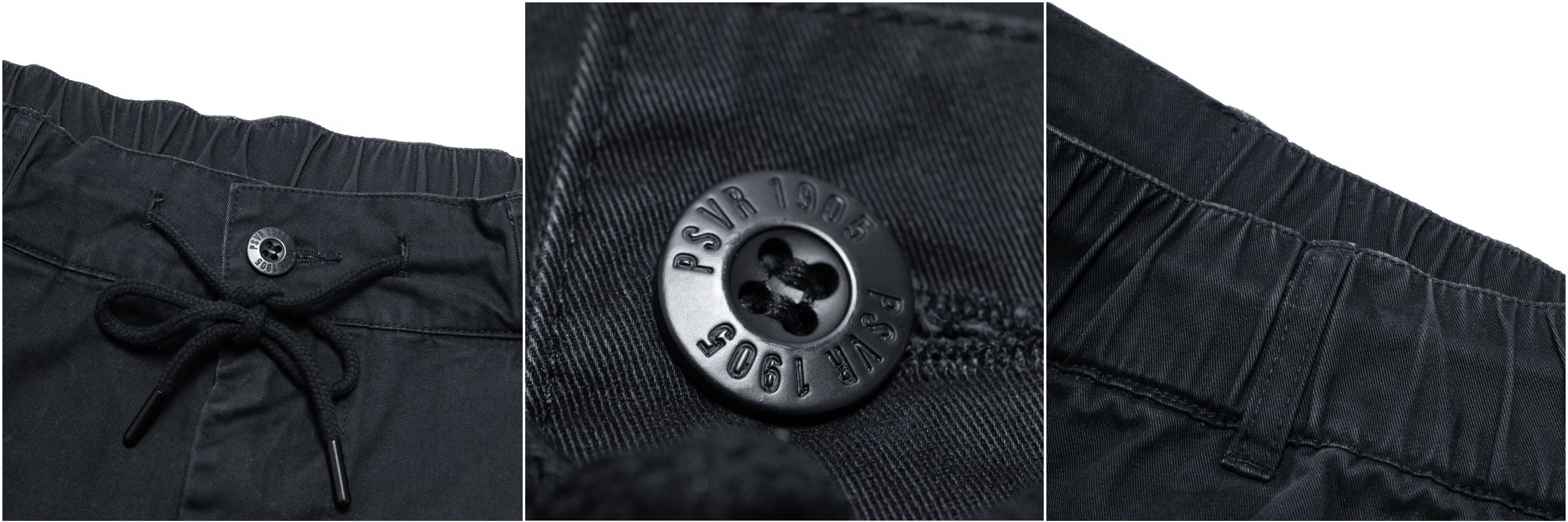 ● 腰圍採用 3/4 鬆緊帶設定並搭配褲腰綁繩,滿足各種尺寸需求並增添穿著的便利性。