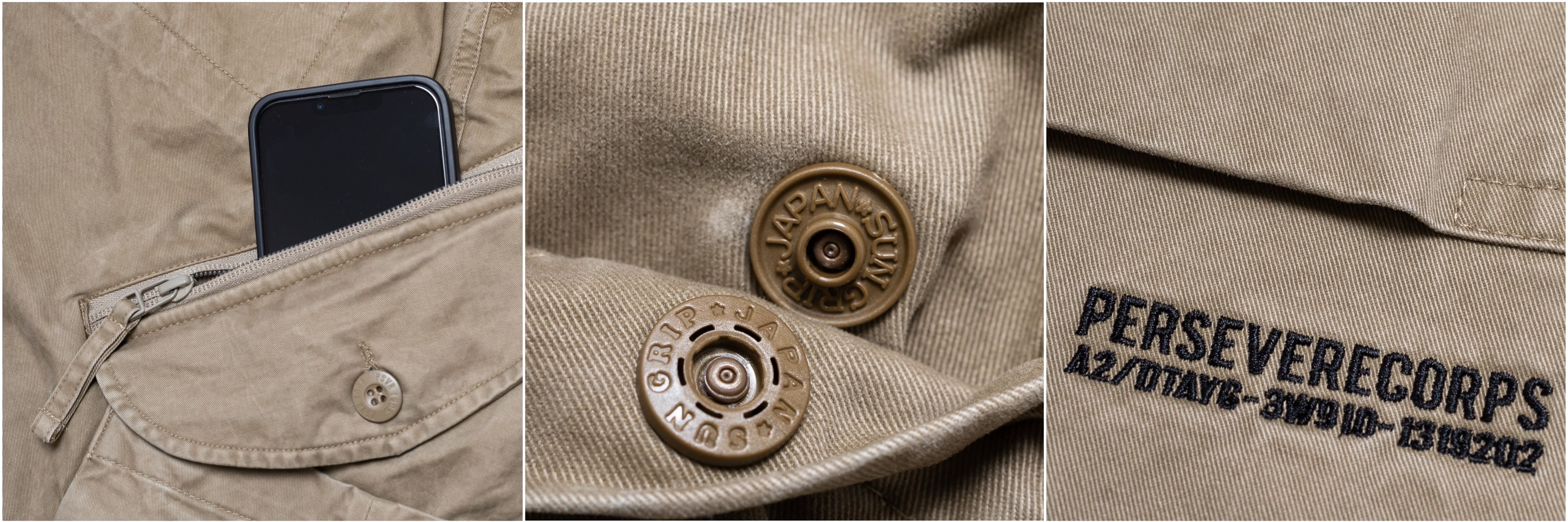 ● 安排品牌獨家尿素釦,搭配YKK拉鍊、日本SUN GRIP壓釦與品牌電繡圖樣,增添細節的使用手感與質感。