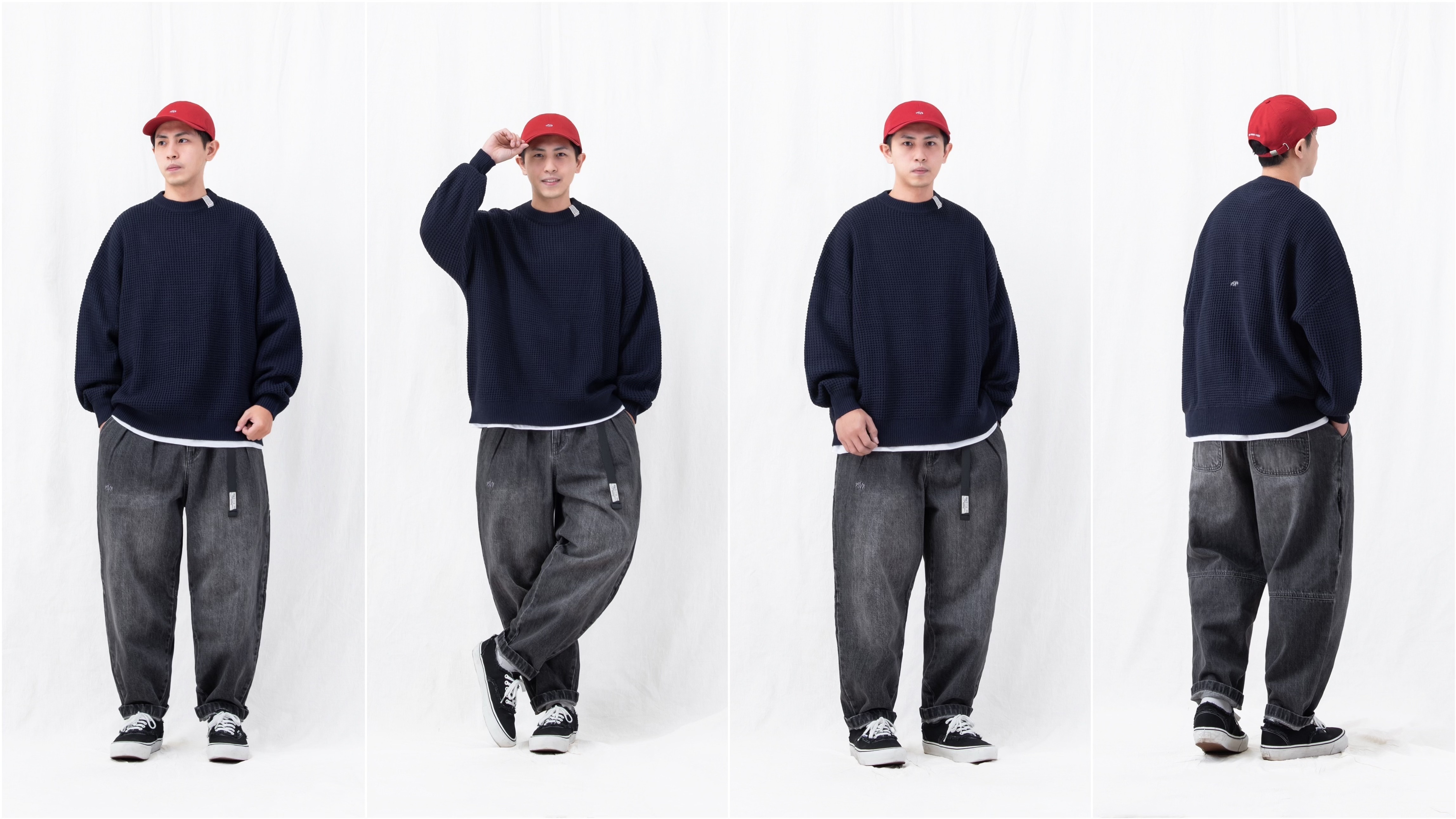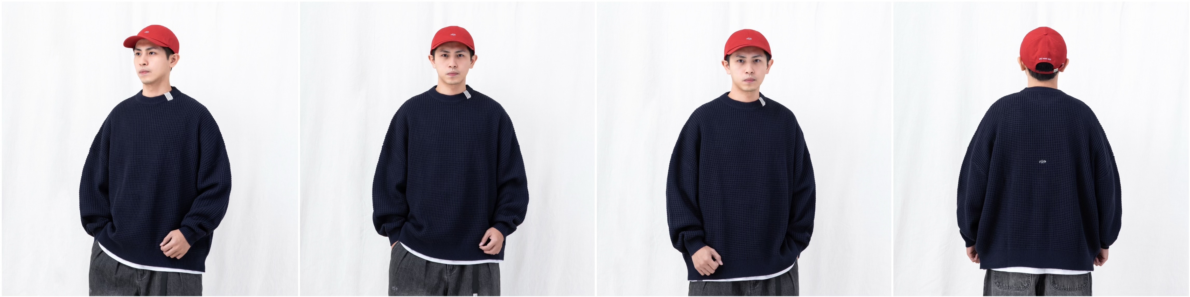 PERSEVERE 華夫格針織毛衣首次全新發售!不同於一般平紋針織商品,品牌特別採用立體粗針華夫格織法製作,使面料呈現蓬鬆卻紮實的獨特手感,版型則以品牌特色的寬鬆落肩輪廓為主,搭配袖口與下襬的羅紋設計,讓著用時自然堆疊出立體份量感,單穿或作為層次搭配都相當合適。