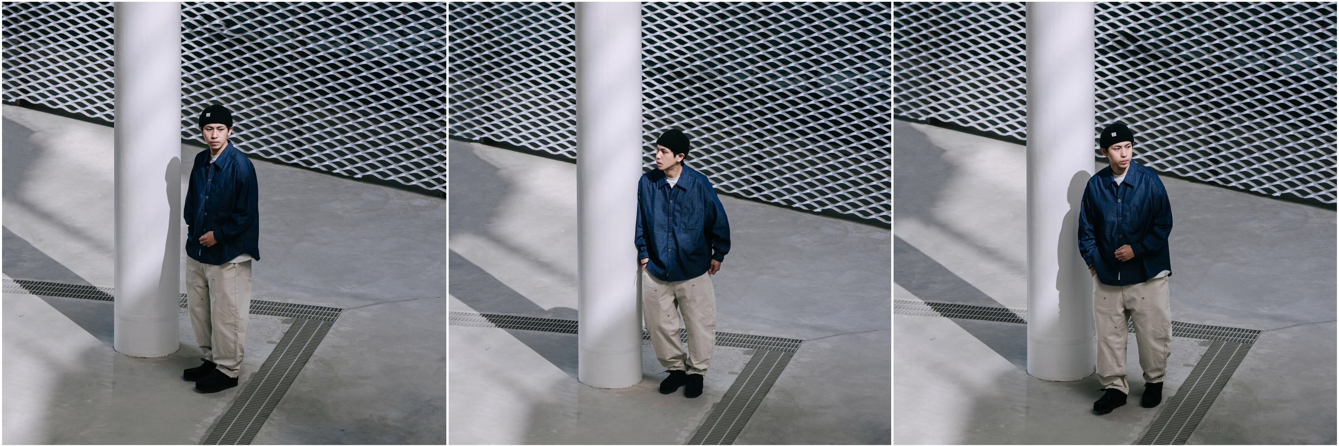 城市休閒系列套組 – 品牌首發水洗牛仔襯衫全新發售!提供淺藍與原色兩款選擇。淺藍款以酵石水洗牛仔布為基底,透過職人手工進行擦色落與扎花工序,堆疊出自然質樸的色落層次;原色款則採用 One Wash 處理,保留牛仔原有風格的同時,進一步提升穿著時的舒適度與柔軟度。版型設定延續品牌特色的寬鬆落肩剪裁,並於背部加入褶線設計,使整體輪廓更為立體;衣襬處點綴品牌米白色織標,在細節中呈現質感。