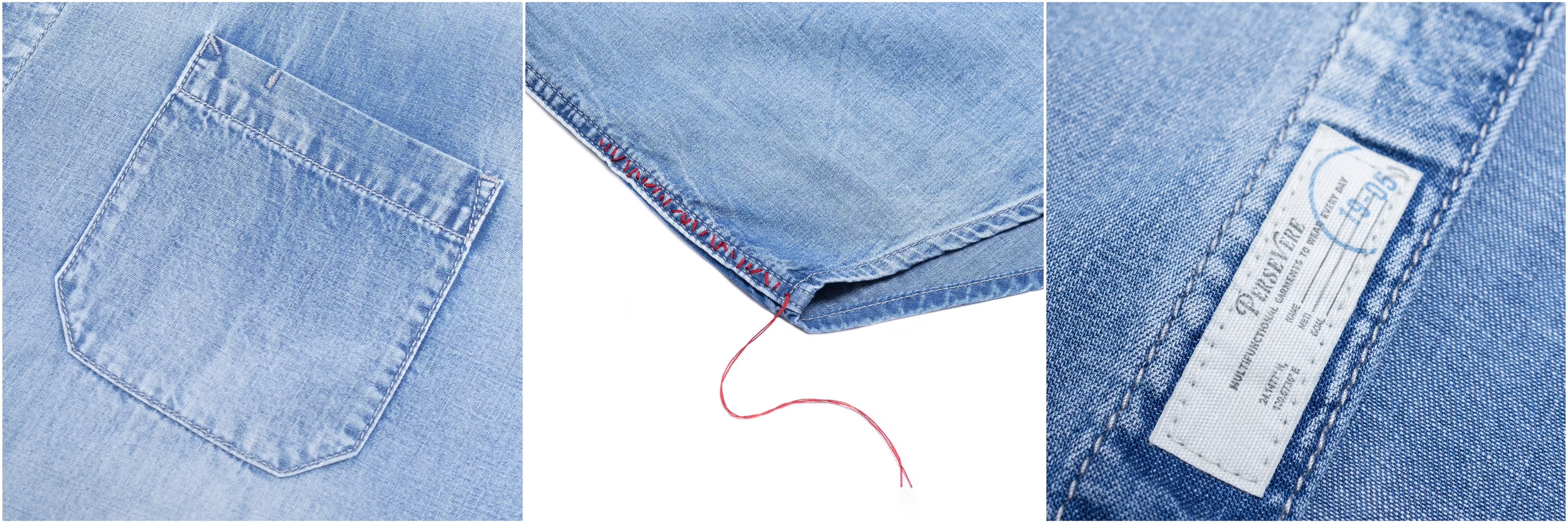 城市休閒系列套組 – 品牌首發水洗牛仔襯衫全新發售!提供淺藍與原色兩款選擇。淺藍款以酵石水洗牛仔布為基底,透過職人手工進行擦色落與扎花工序,堆疊出自然質樸的色落層次;原色款則採用 One Wash 處理,保留牛仔原有風格的同時,進一步提升穿著時的舒適度與柔軟度。版型設定延續品牌特色的寬鬆落肩剪裁,並於背部加入褶線設計,使整體輪廓更為立體;衣襬處點綴品牌米白色織標,在細節中呈現質感。