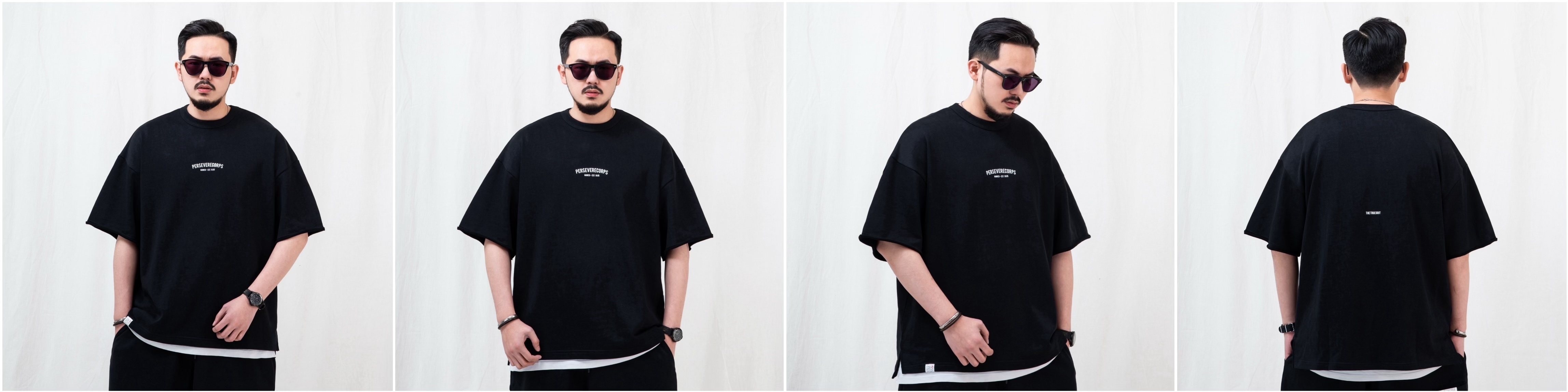 品牌春夏套裝 – 寬版水洗T恤全新發售,特選棉質混紡的魚鱗布料進行製作,透過兩種不同的水洗工序各別呈現,以 Pigment Dyeing 成衣染製方式展現自然色落的淺灰色與深灰色,黑色則是採用洗褪工法營造出低調率性的質感。細節部分,防止領口變形,透過加厚羅紋包覆且外包車縫方式固定,提升耐穿度,版型則以寬鬆落肩作為設定,同時進行二次預縮處理的工序,以延長衣物的使用壽命。