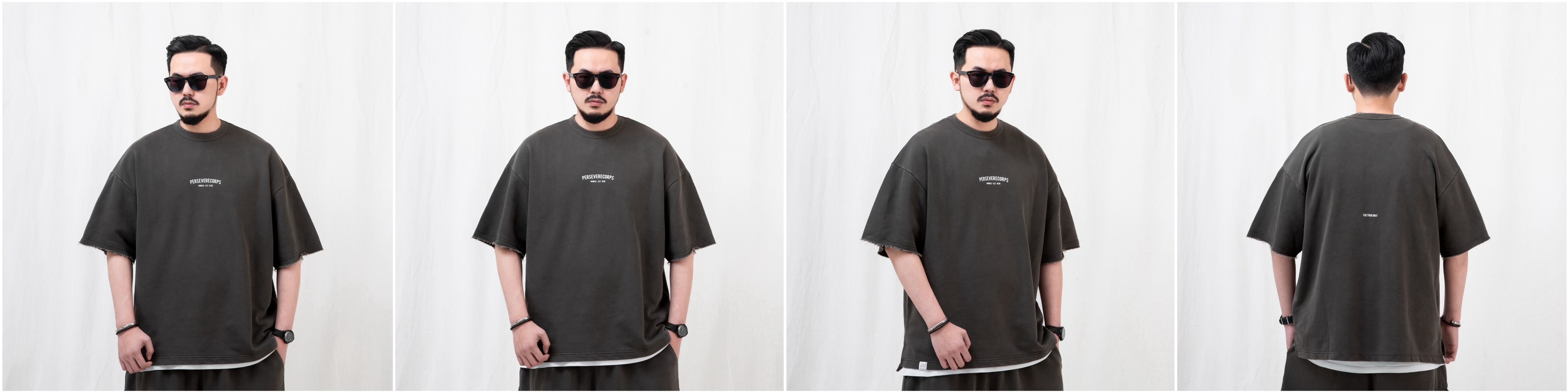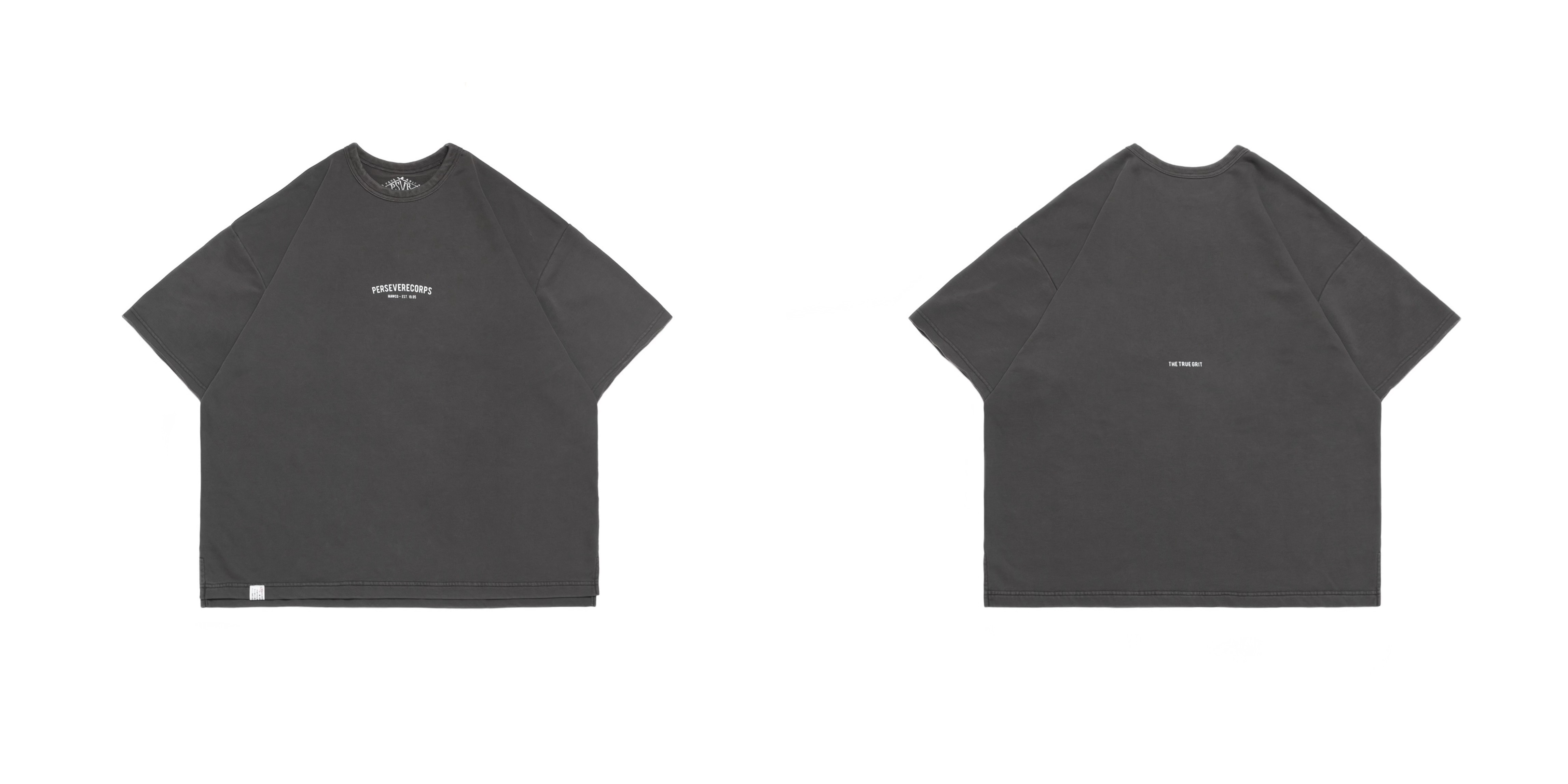品牌春夏套裝 – 寬版水洗T恤全新發售,特選棉質混紡的魚鱗布料進行製作,透過兩種不同的水洗工序各別呈現,以 Pigment Dyeing 成衣染製方式展現自然色落的淺灰色與深灰色,黑色則是採用洗褪工法營造出低調率性的質感。細節部分,防止領口變形,透過加厚羅紋包覆且外包車縫方式固定,提升耐穿度,版型則以寬鬆落肩作為設定,同時進行二次預縮處理的工序,以延長衣物的使用壽命。
