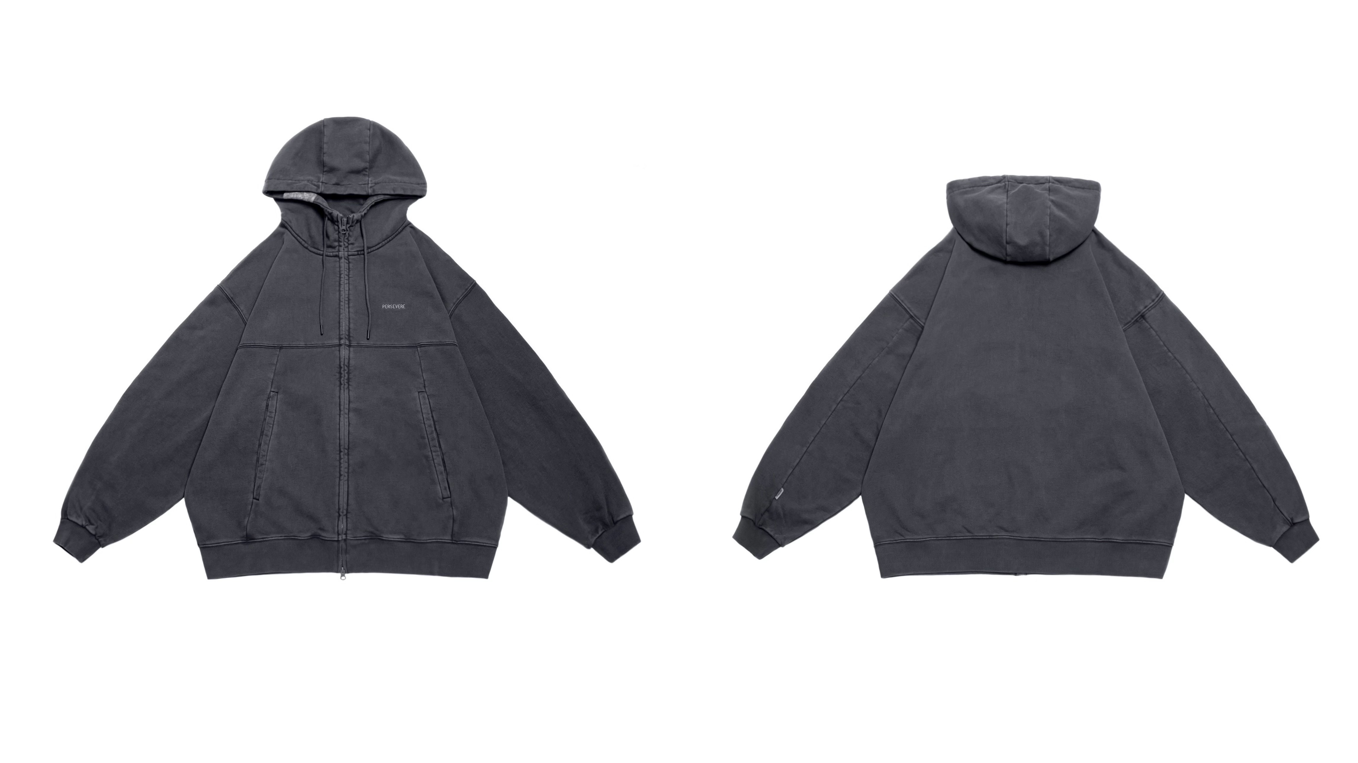 品牌首款水洗連帽外套全新發售,訂製高磅數刷毛純棉面料製作,提供著用的溫暖厚度感受,版型則以品牌的特色寬鬆落肩輪廓為主,搭配雙層連帽設定,並以 Pigment Dye 染整技術進行水洗程序,呈現自然的擬態色落感。