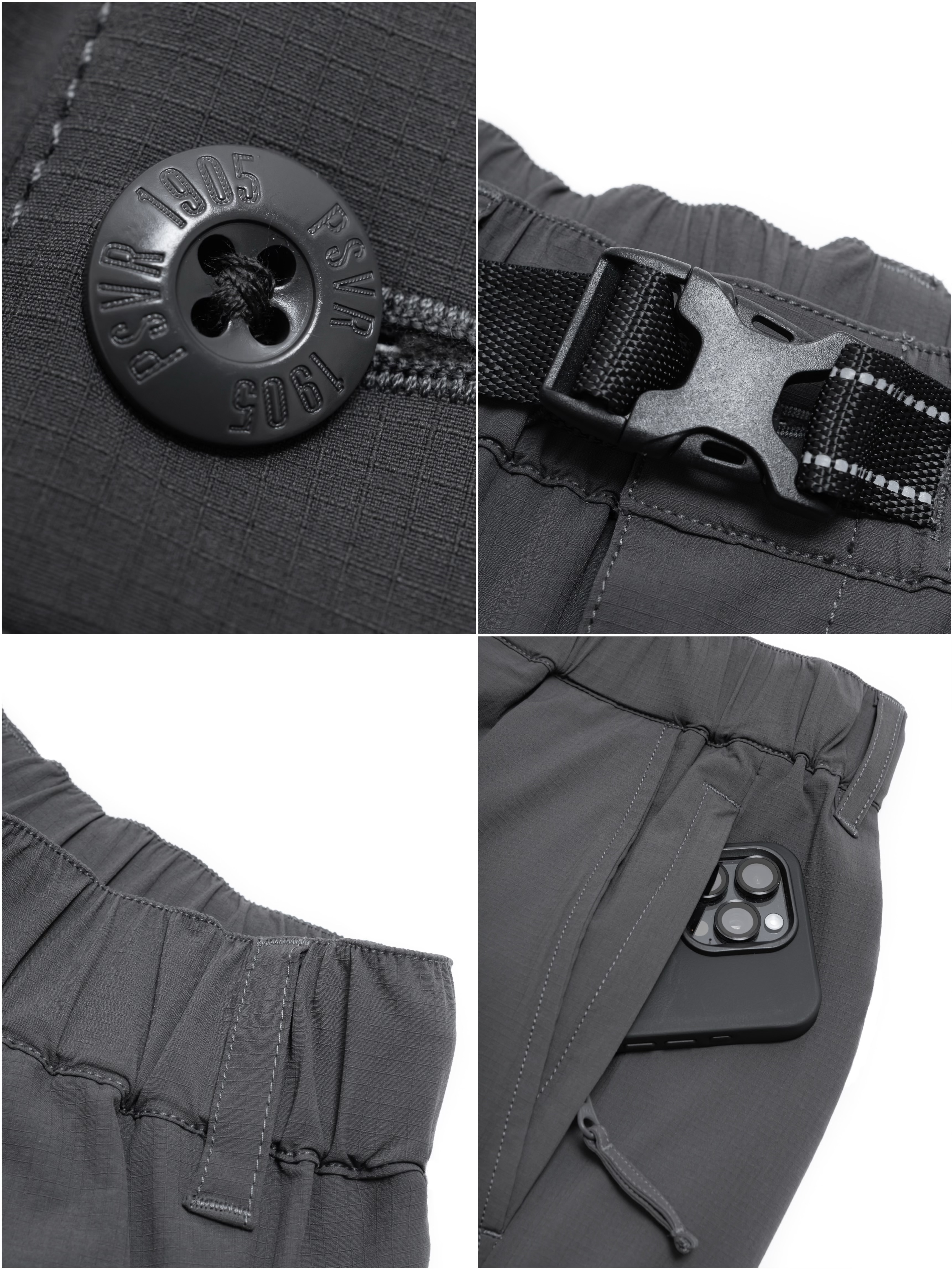 ● 腰圍全鬆緊帶設定,搭配美國DURAFLEX尾夾的可拆式3M腰帶設計,滿足各種尺寸需求並增添穿著的便利性。