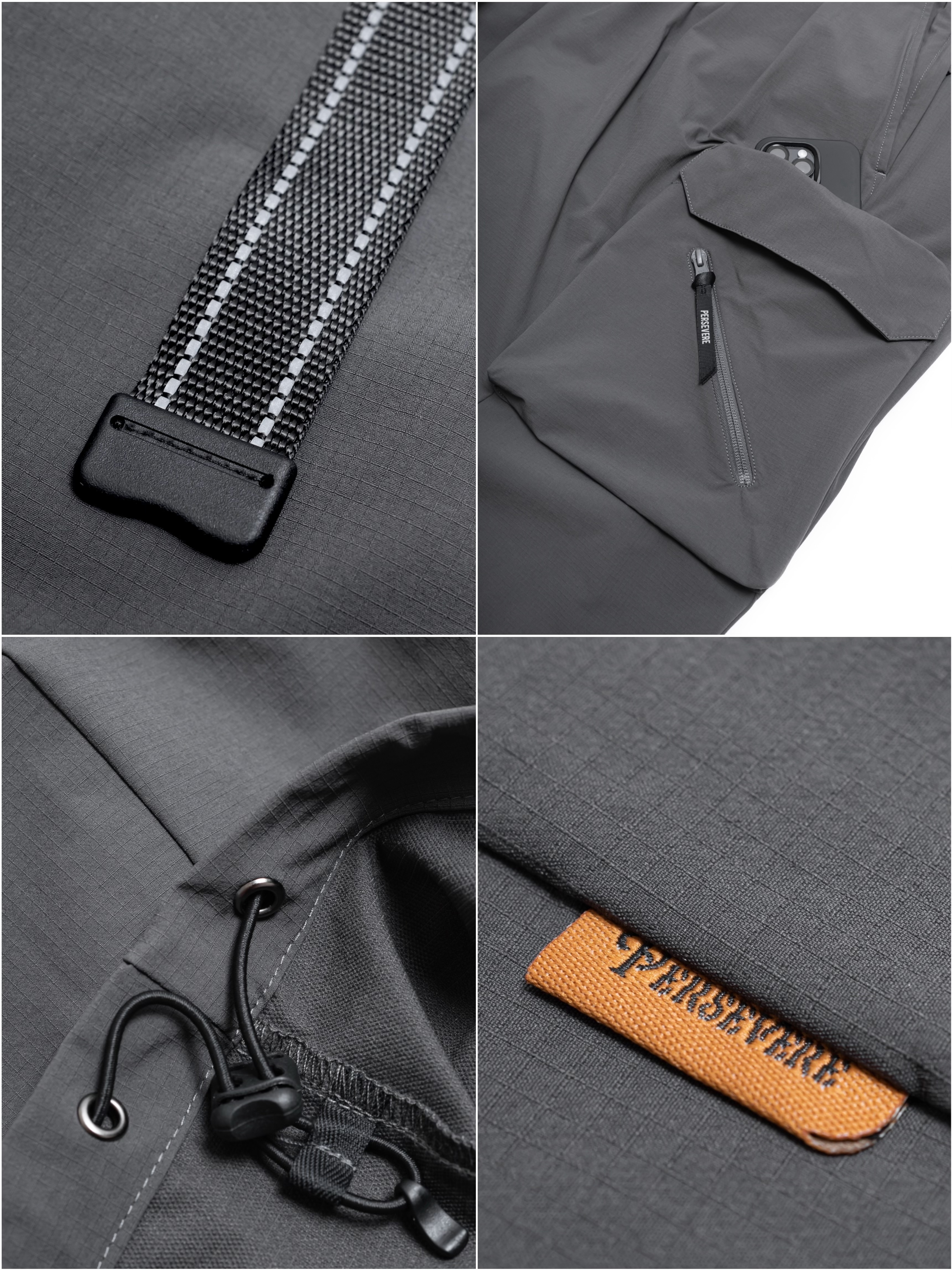 ● 挑選消光尼龍混紡彈性纖維面料製作,材質帶有抗撕裂紋理、抗皺、防潑水、彈性的機能度。