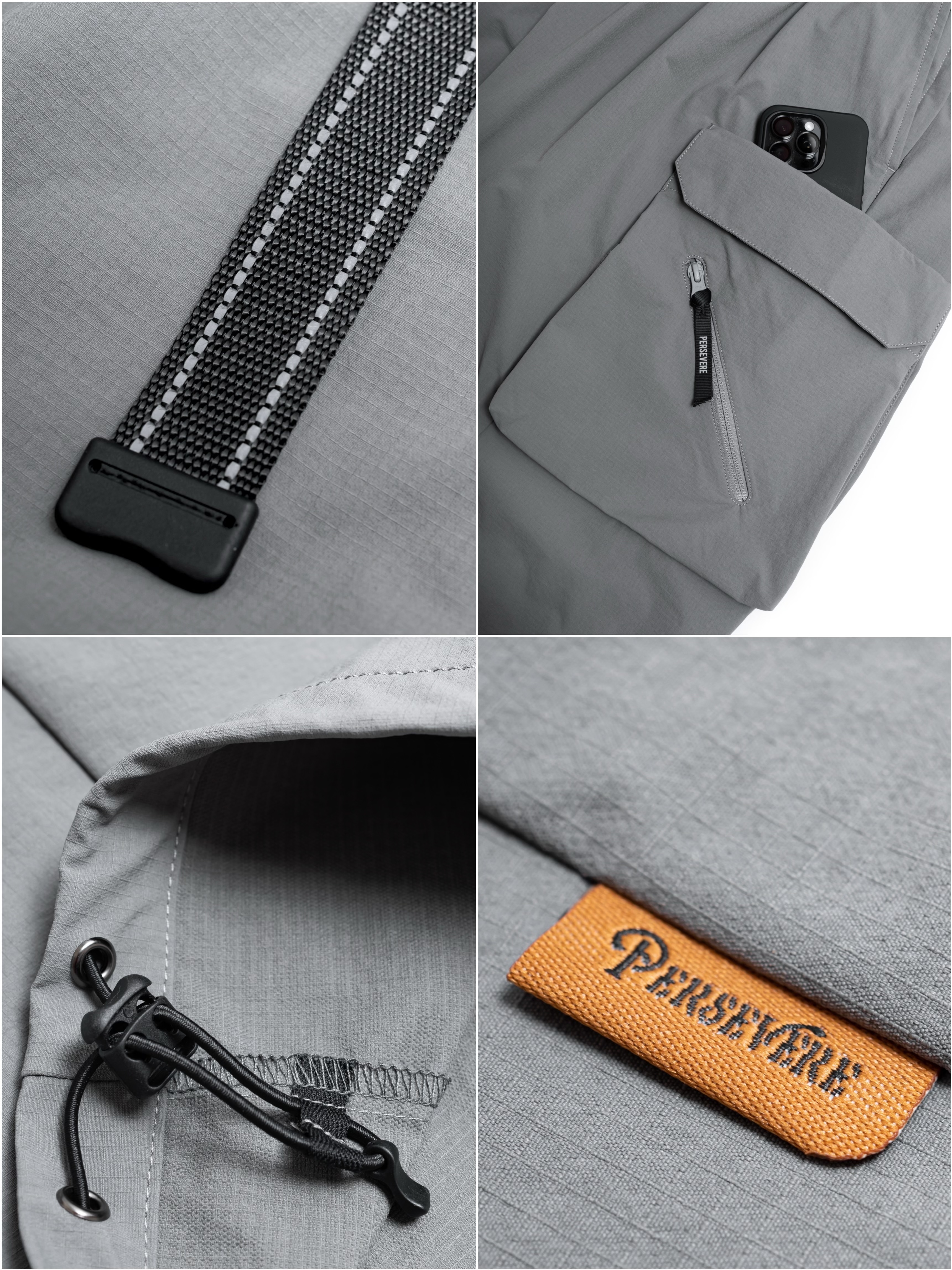 ● 挑選消光尼龍混紡彈性纖維面料製作,材質帶有抗撕裂紋理、抗皺、防潑水、彈性的機能度。