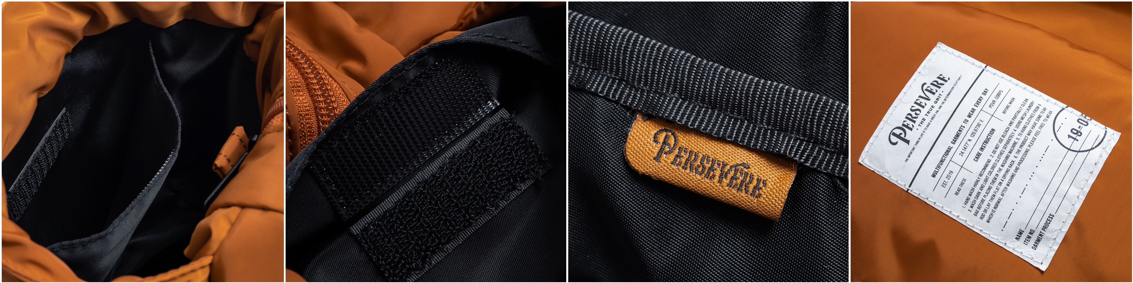 ● 細節處安排TYVEK®視覺標及品牌橘色織標,增添豐富度。