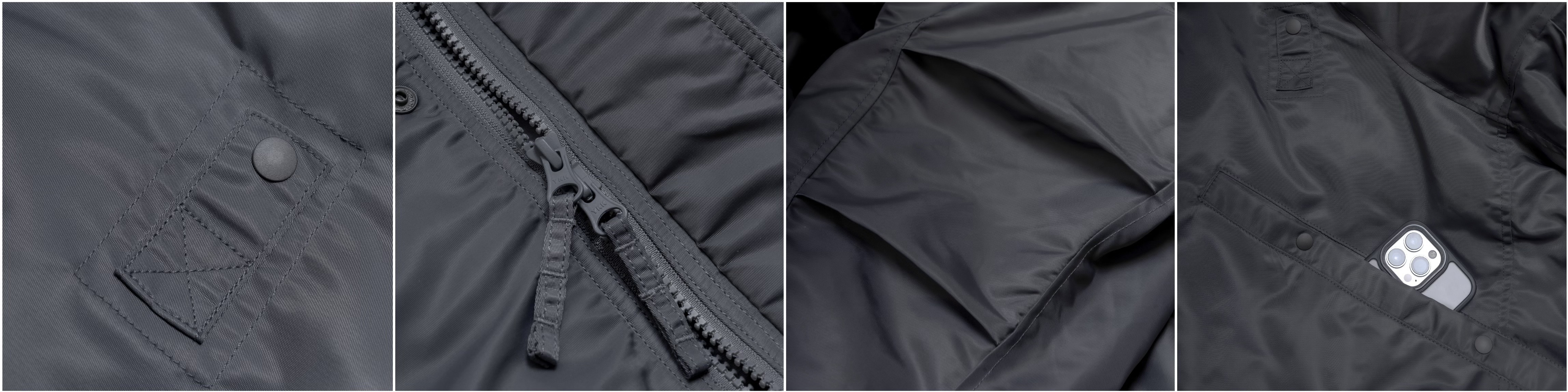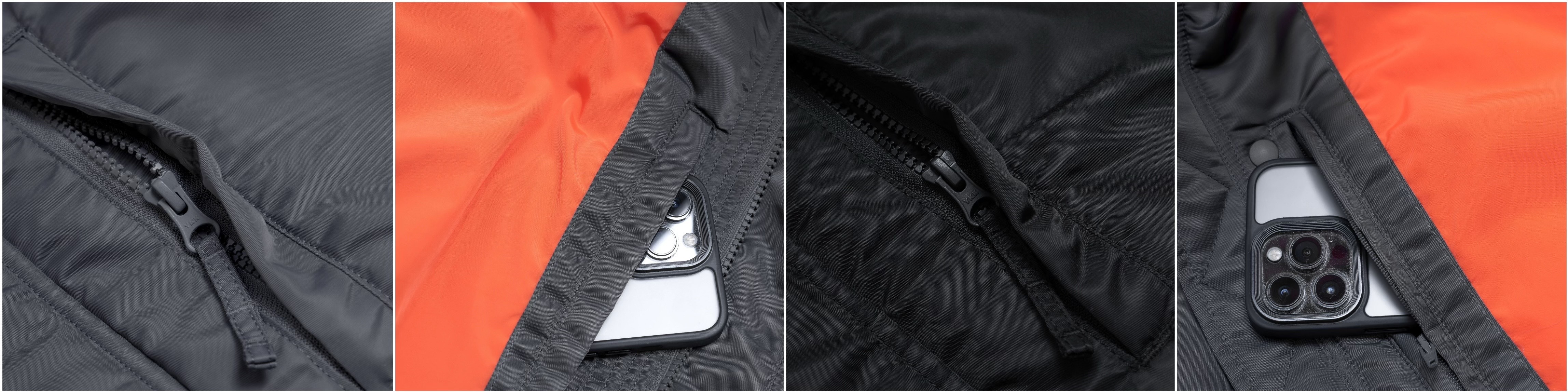 ● 內裡採用經典的MA-1橘色並配置鋪棉設定,提供著用的舒適感與保暖度。