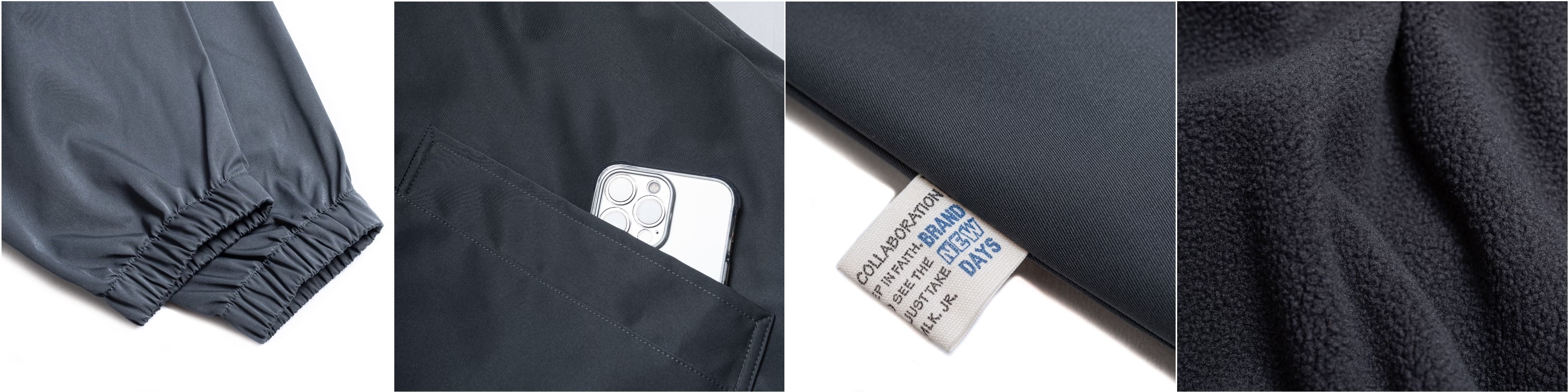 以洗練質感的教練外套為架構,揉合輕機能概念,挑選具有生活防潑水、抗皺的高品質棉感 Polyester 面料製作,搭配搖粒絨內裡提升著用保暖度,透過 Persevere 經典的寬鬆落肩版型輪廓,並融入雙方設定的細節配置,內搭連帽或大學T恤,輕鬆穿出多層次風格。