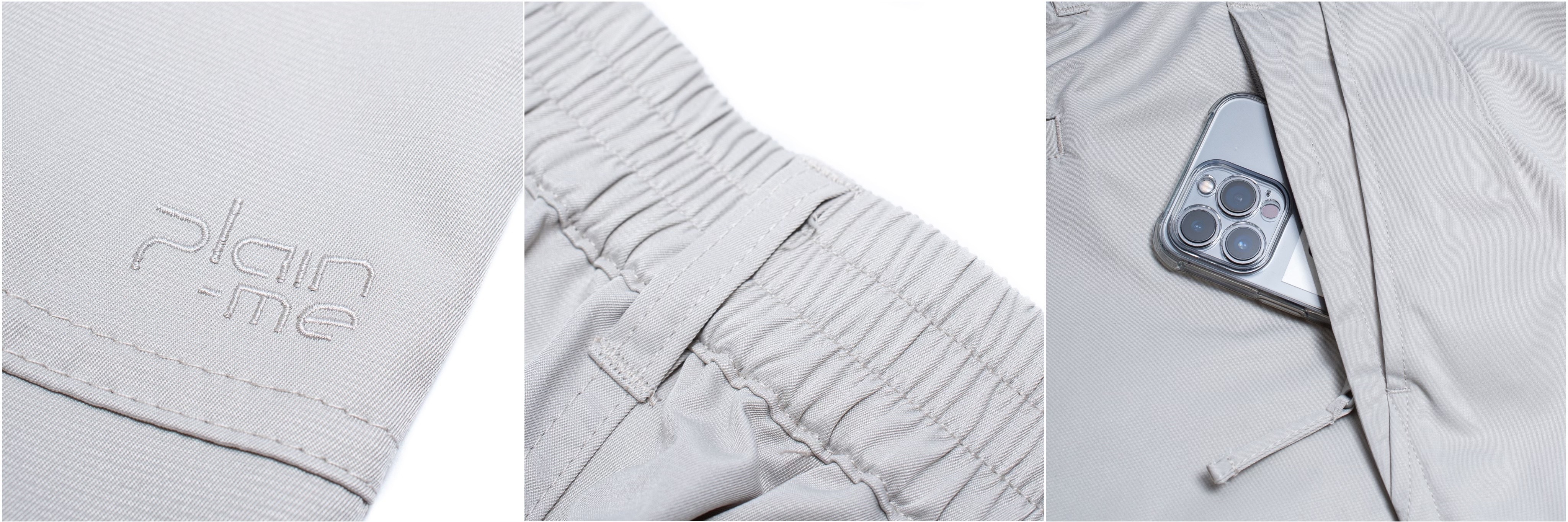 以微正式的雙摺錐形褲為架構,揉合輕機能概念,挑選具有生活防潑水、抗皺的高品質棉感 Polyester 面料製作,透過 Persevere 經典的上寬下窄錐形輪廓,並融入雙方設定的細節配置,搭配後腰圍鬆緊帶設定,讓著用時更加輕鬆便利。