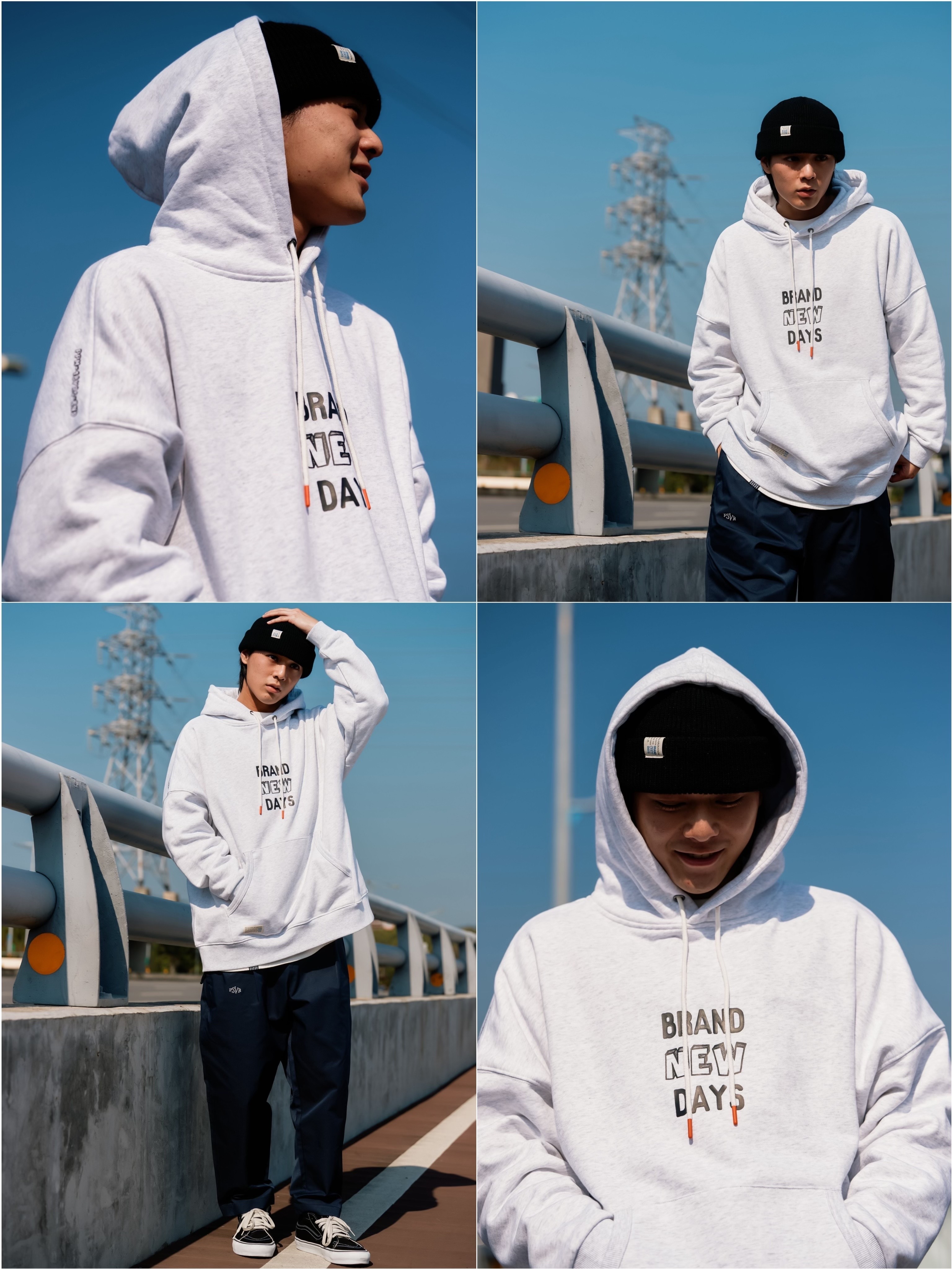 將雙方合作主題 “ Brand new days ” 以立體印刷方式呈現在棉質的刷毛面料上,並採用 Persevere 的經典特殊落肩版型,傳達出輕鬆休閒的氛圍,搭配撞色的抽繩繩頭細節、雙品牌聯名大小織標,提升整體視覺豐富度。