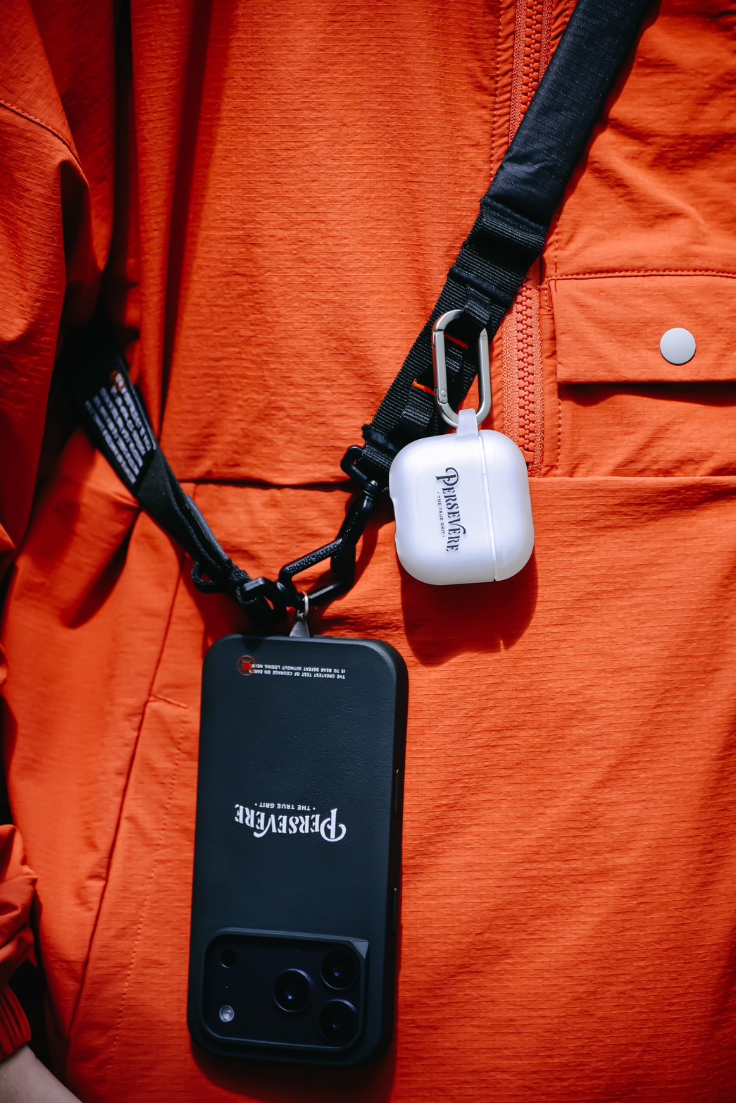 選用 RHINOSHIELD 耐衝擊耳機殼作為 PERSEVERE LOGO 圖像的載體,創造經典風格。