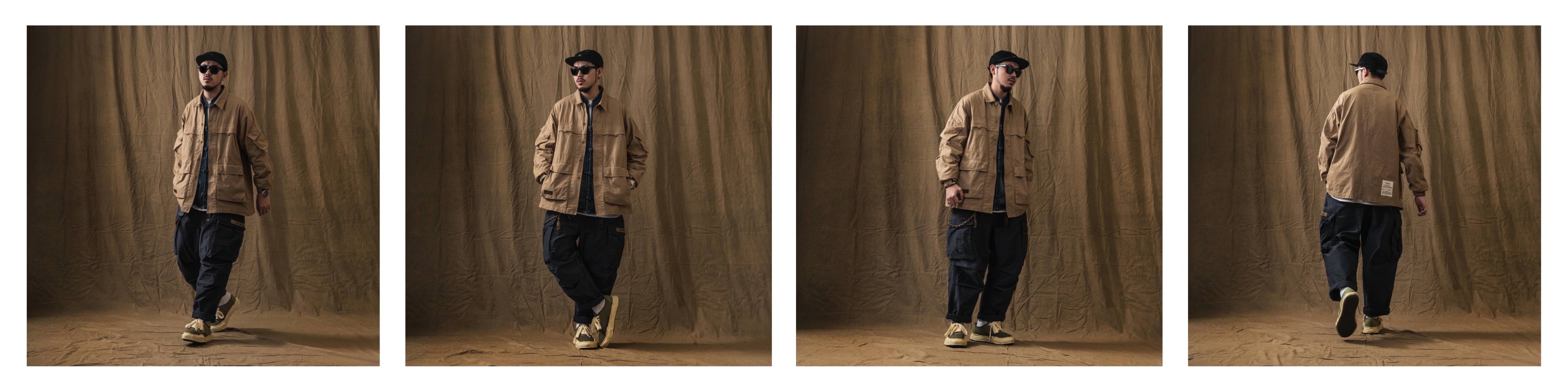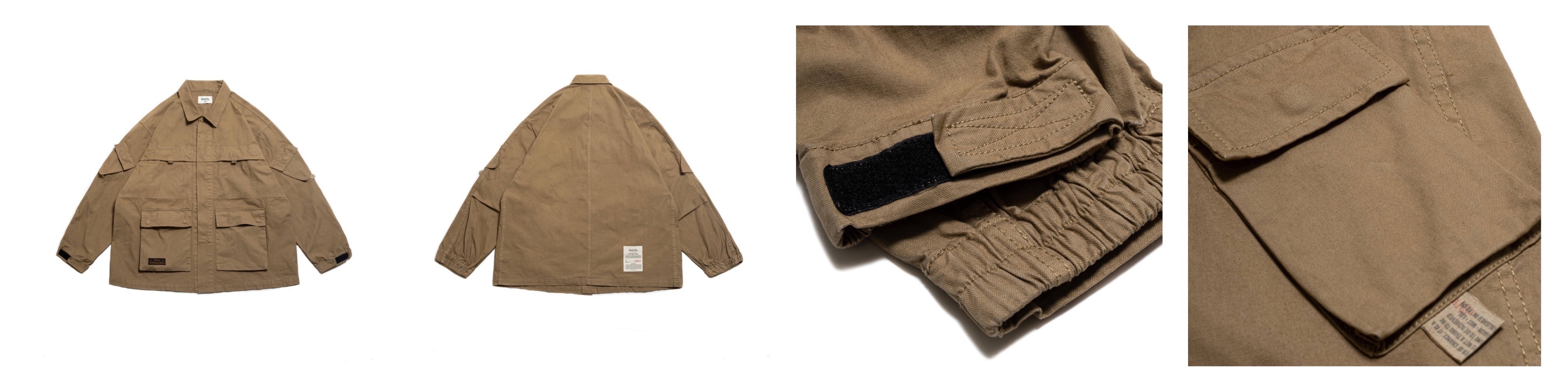 ● 配置4個外顯、4個隱藏式口袋細節,提升實用功能性,並使用粗棉線搭配鎖鍊車方式進行車縫,大幅增加耐穿程度。