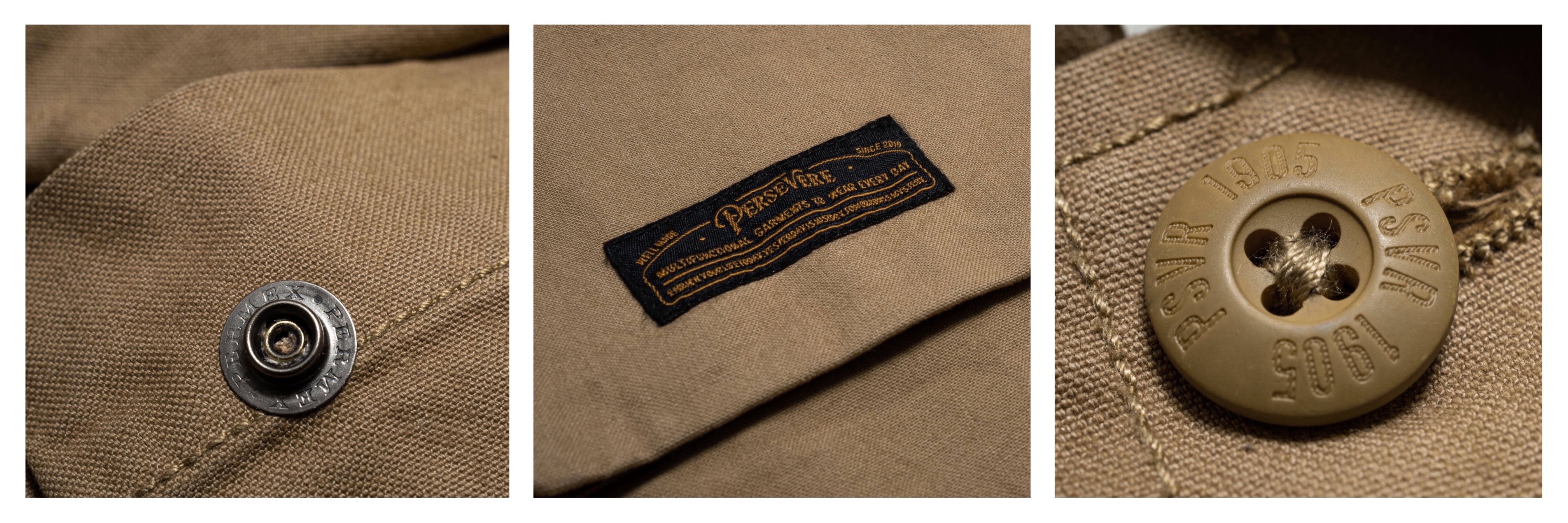 ● 輔料特選日本 YKK -PERMEX 金屬壓釦,搭配 PERSEVERE 獨家開發軍規尿素釦,提升使用手感與耐用度。