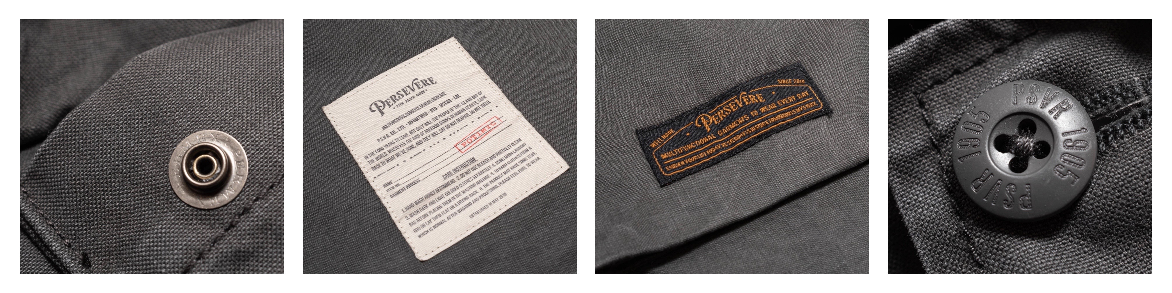 ● 輔料特選日本 YKK -PERMEX 金屬壓釦,搭配 PERSEVERE 獨家開發軍規尿素釦,提升使用手感與耐用度。