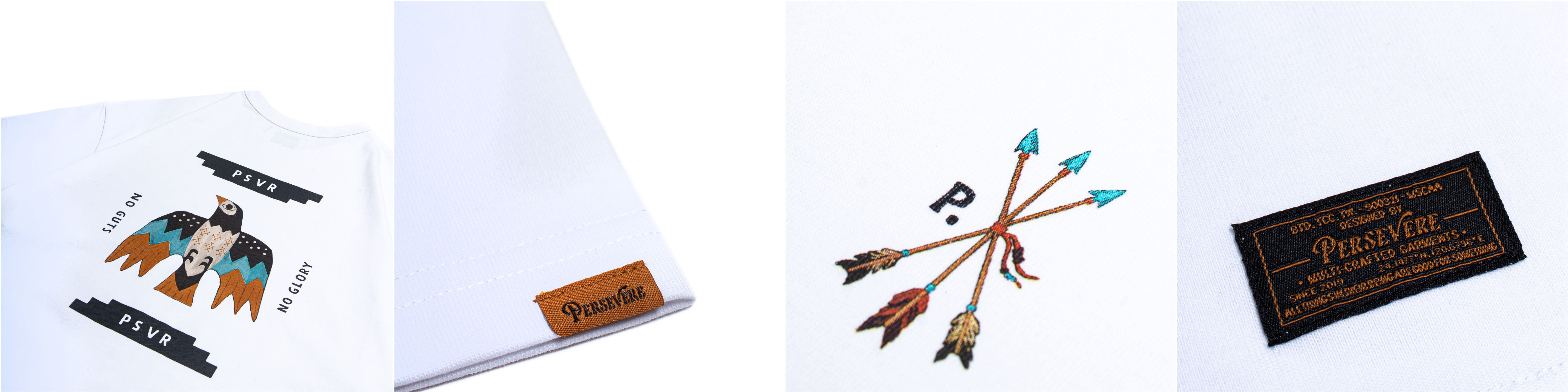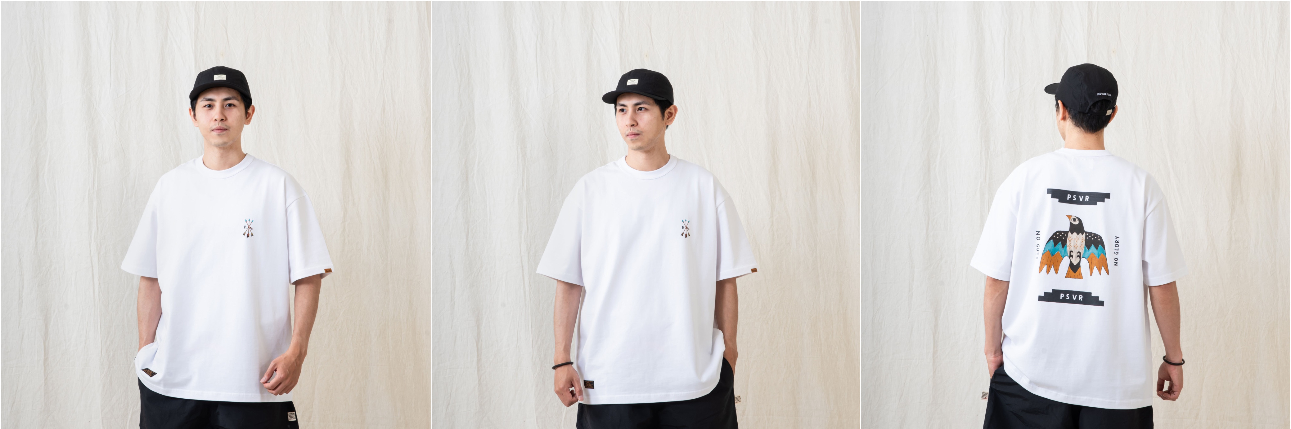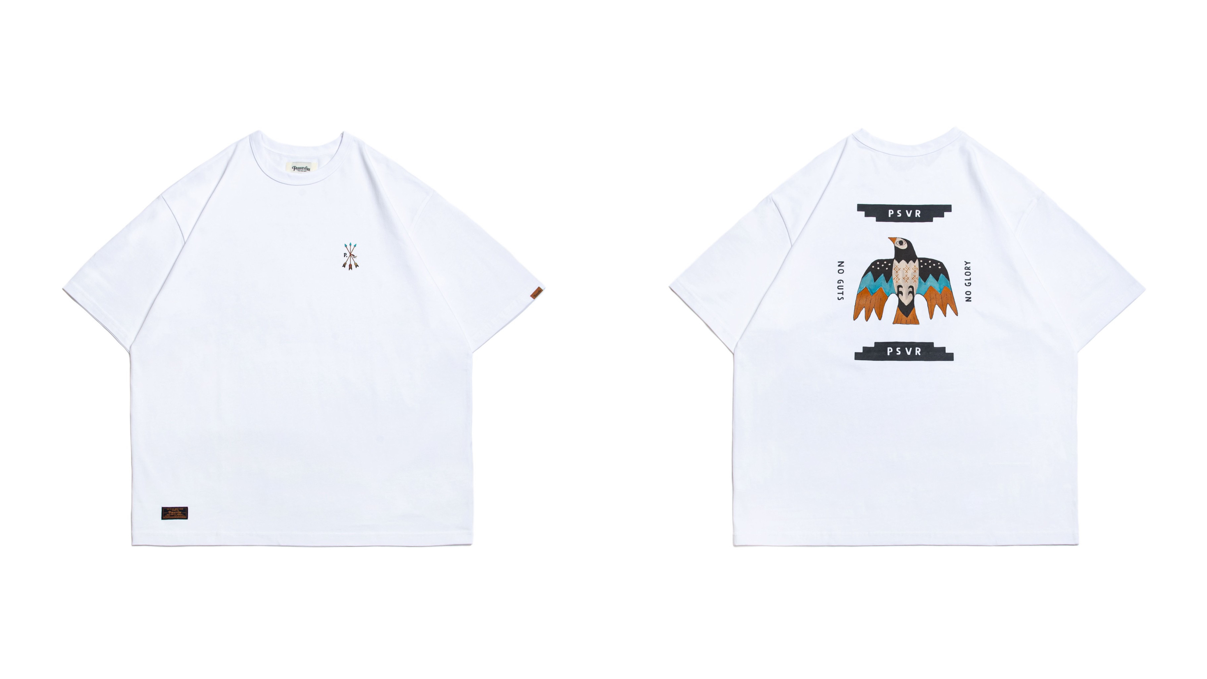品牌別注系列第二款,選用復古色彩描繪印地安神話中的雷鳥,以 NO GUTS, NO GLORY 呼應天空之神所代表的力量象徵,搭配胸前箭矢意象,展現勇往向前、實現目標的多重涵義,並選用全新開發的雙股紗製作,提供舒適透氣的著用感受。工序方面,採用二次水洗預縮製程,大幅減低衣物縮水窘境,搭配加厚羅紋包覆領口,以達到防止變形與提升耐穿度,版型部分則以寬鬆落肩剪裁作為設定,單穿或混搭都相當合適。