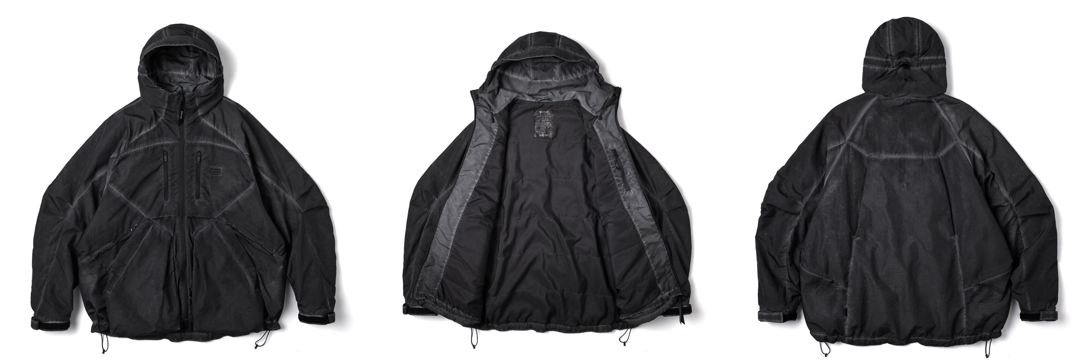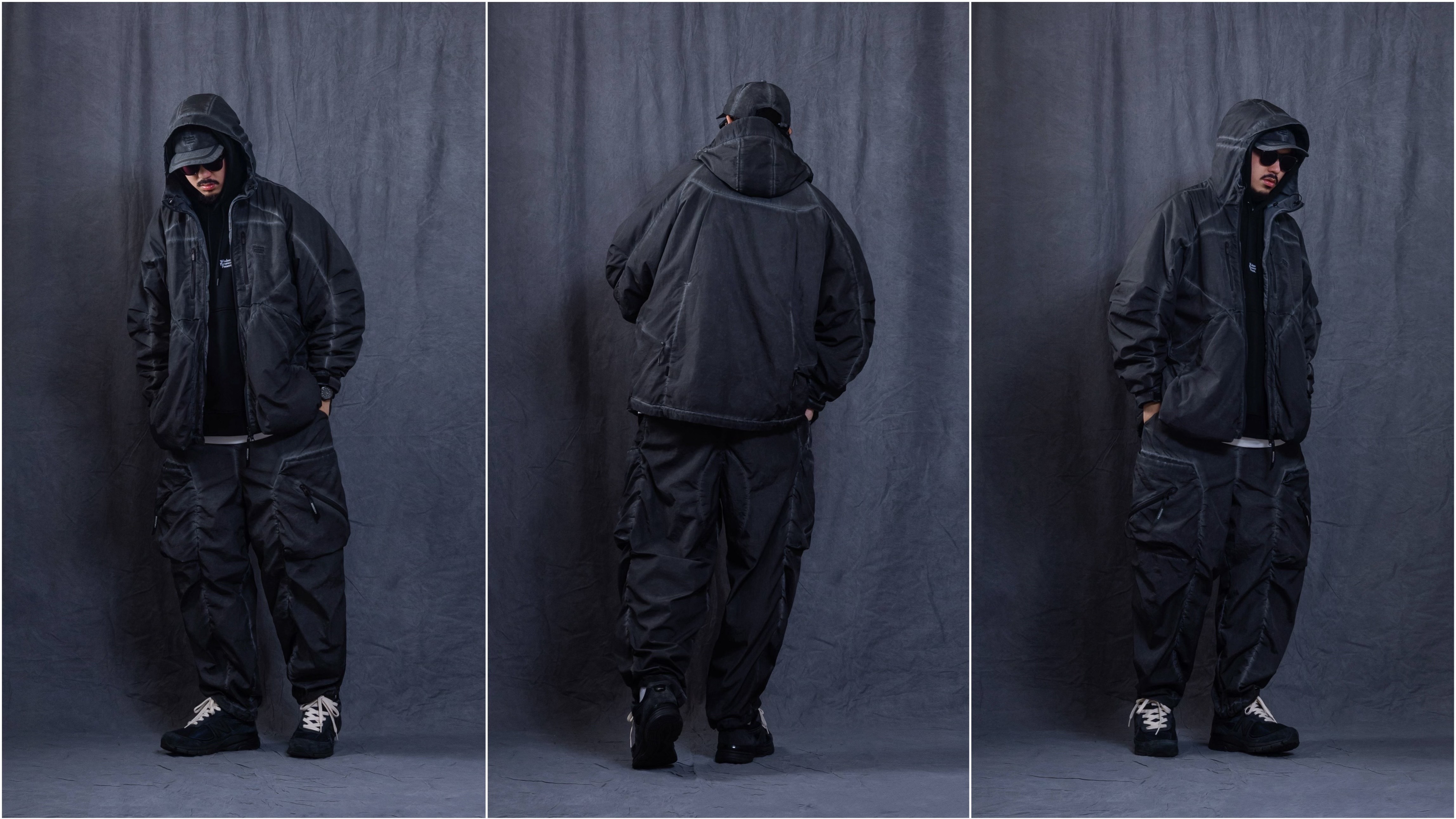 本次聯名從雙方擅長的戶外與軍、工裝元素的設計中,找到屬於城市舒適穿著的基礎與變化應用,包含了T-shirt、Hoodie、多口袋防潑水鋪棉外套、錐形工作褲、拼接棒球帽與單肩斜跨背包,並以「黑、白」經典色系為基礎,運用特殊洗水工法呈現出「水洗灰」的中性配色,更在設計中融入了防風撥水與保溫防撞材質Neoprene、SORONA®,進一步提升單品的實穿性與功能性。