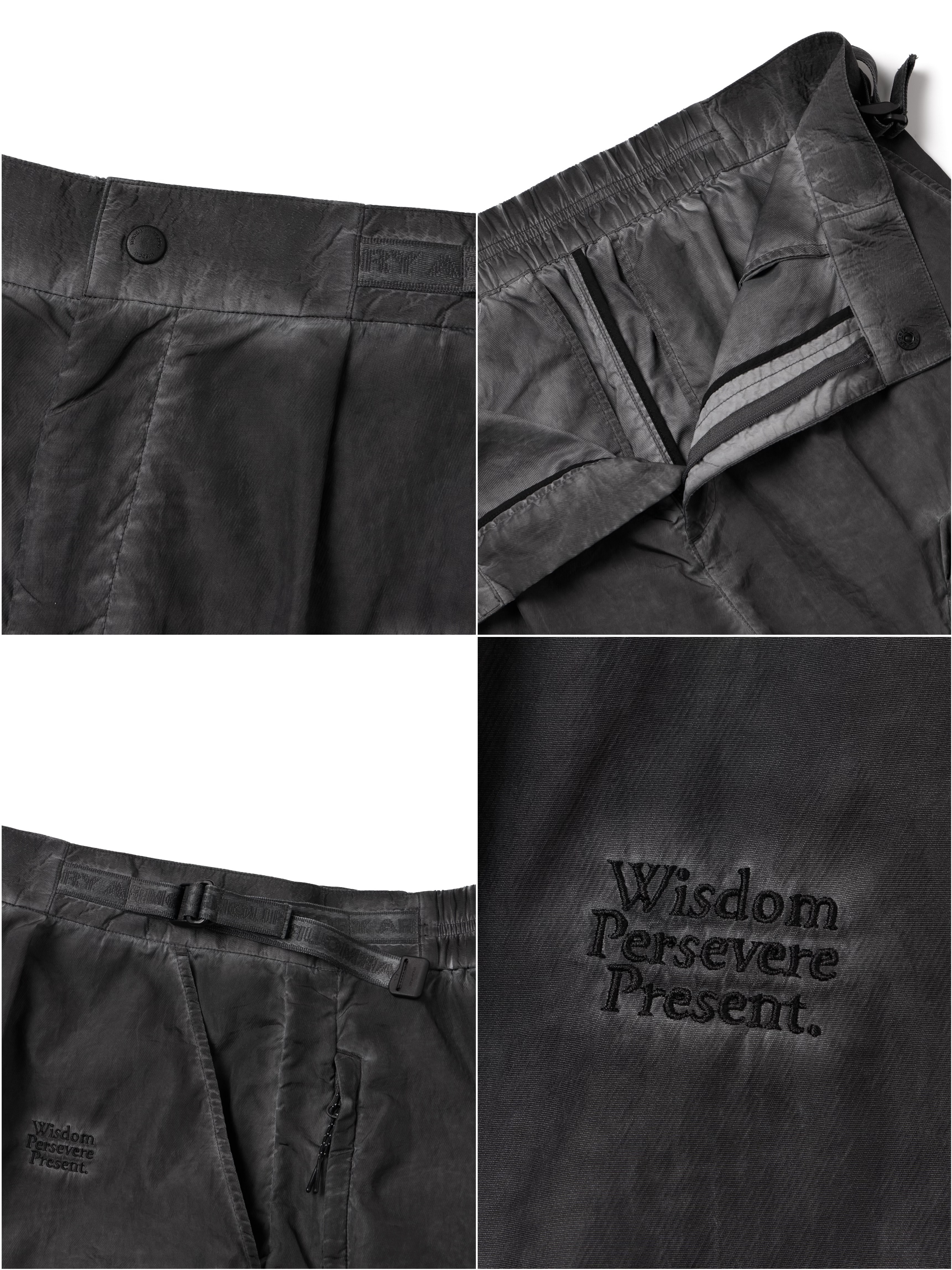 WISDOM® x PERSEVERE 聯名系列 Washed Gray 色系為了使洗舊質感與布料材質融合度更好,視覺效果更具風格,整體採用尼龍成衣染製工藝製作,由於尼龍洗舊工藝的特性,面料本身可能會有輕微掉色情況。經過多次洗滌後,顏色將逐漸穩定。我們強烈建議在首次穿著前,先進行一次洗滌,以確保最佳的著用效果。