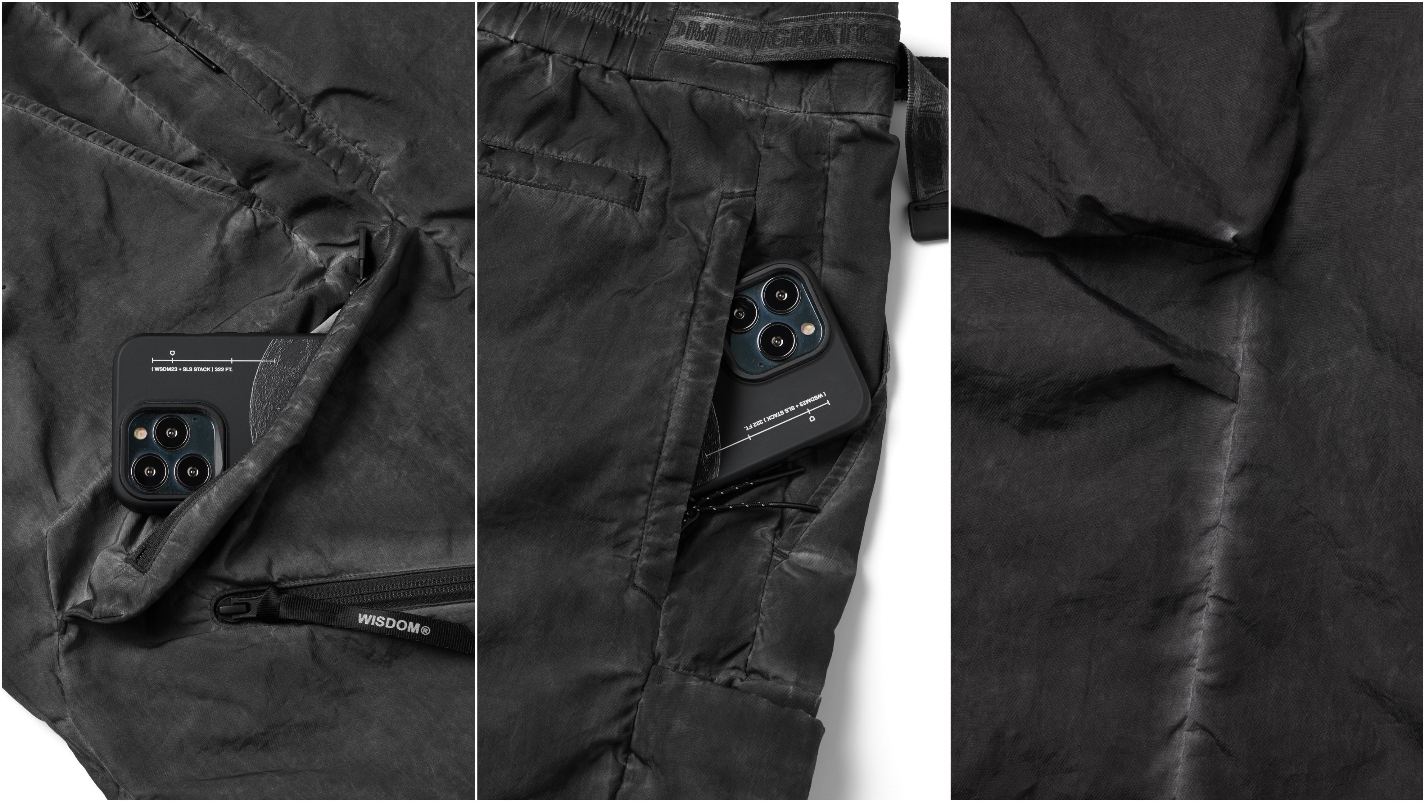 以“ LOOMED ECHOES ” 的概念形塑,WISDOM® 與PERSEVERE 攜手合作STYLE 03 高機能多口袋錐形軍褲,由零開啟布料形式設定,將科技機能面料融入染製水洗及防潑水工序製程,並分別應用在不同的顏色設定,透過版型剪裁與口袋配置,增加實用性。
