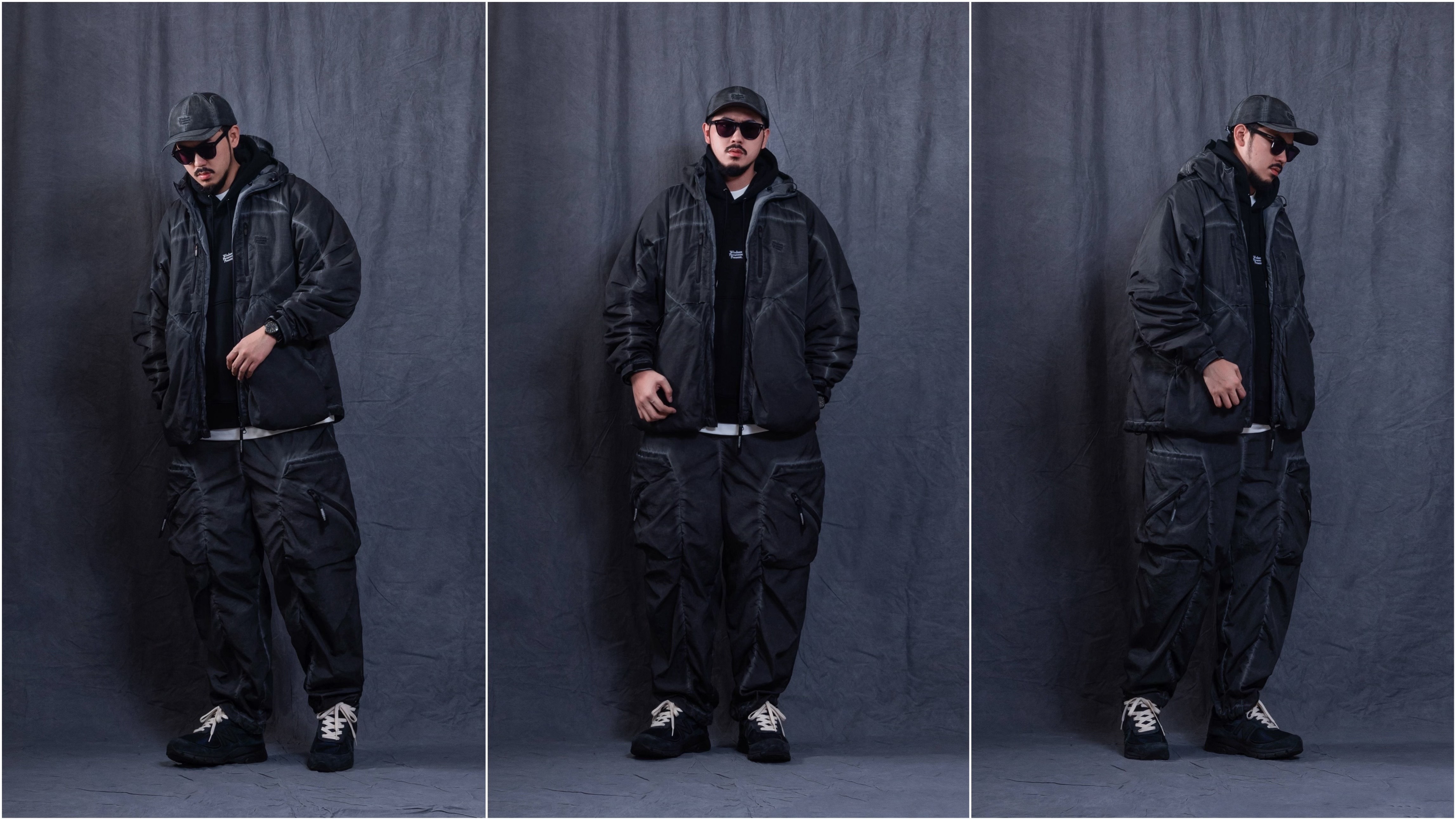 本次聯名從雙方擅長的戶外與軍、工裝元素的設計中,找到屬於城市舒適穿著的基礎與變化應用,包含了T-shirt、Hoodie、多口袋防潑水鋪棉外套、錐形工作褲、拼接棒球帽與單肩斜跨背包,並以「黑、白」經典色系為基礎,運用特殊洗水工法呈現出「水洗灰」的中性配色,更在設計中融入了防風撥水與保溫防撞材質Neoprene、SORONA®,進一步提升單品的實穿性與功能性。